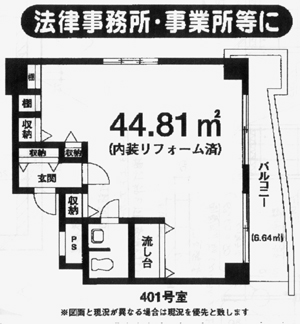 ● 貸室のご案内(千葉県庁前) 貸又は売り事務所,9階建マンション4F (14.7坪、内装リフォーム済) 売り価格:490万円、賃貸料月6万円、どちらでも結構です。 お気軽にご相談下さい!